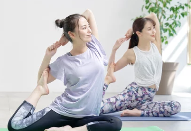 - 두 손을 등 뒤에서 깍지 끼고 천천히 아래로 당깁니다.