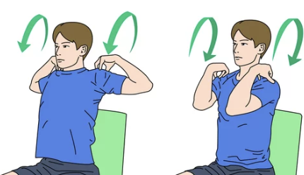 - 팔을 양옆으로 벌리고 천천히 큰 원을 그리며 돌립니다.