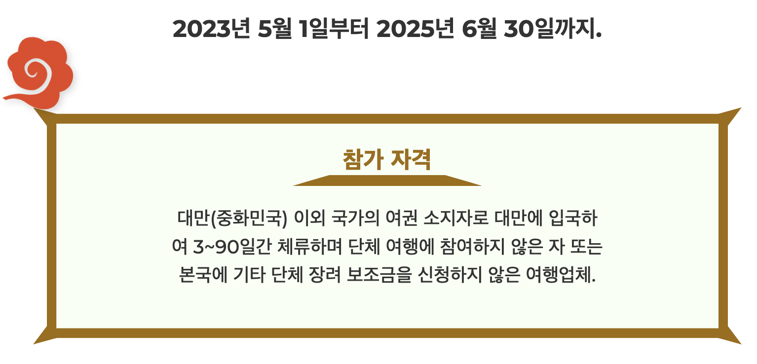 - 대상: 대만을 방문하는 외국인 자유여행객