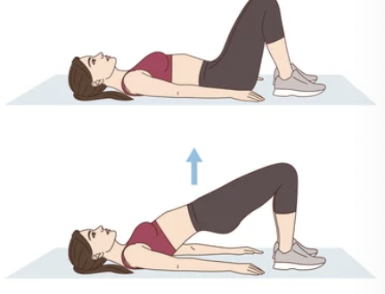 - 브릿지 TIP: 바닥에 누워 무릎을 세우고 엉덩이를 들어 올렸다 내리는 동작을 반복합니다. 허리가 꺾이지 않도록 주의하고, 엉덩이와 허벅지 뒤쪽에 힘을 주어 자극을 느껴야 합니다.