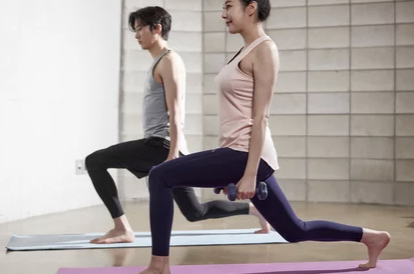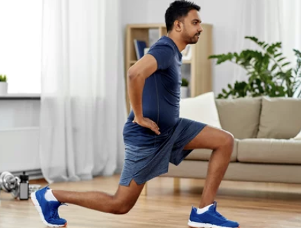 - 런지 TIP: 한 발을 앞으로 내딛고 무릎을 굽혀 앉았다 일어서는 동작을 반복합니다. 앞쪽 무릎이 발끝보다 앞으로 나가지 않도록 주의하고, 허리는 곧게 펴야 합니다.